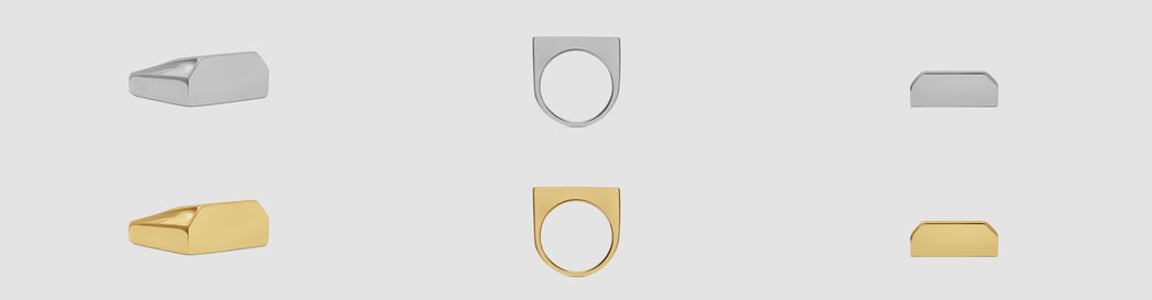 Signet rings and ear cuffs stripped to their core — quiet, architectural, intensely present.